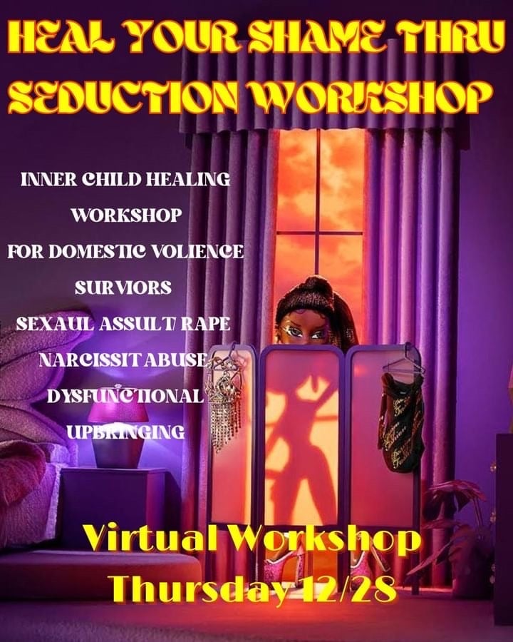 Heal your shame thru seduction workshop is for femme that have experienced domestic Violence, sexual assault, narcissistic abuse and dysfunctional upbringing. This will be an intimate space for us to heal, feel, & dance to reclaim our bodies because most are disconnected because of the pain.